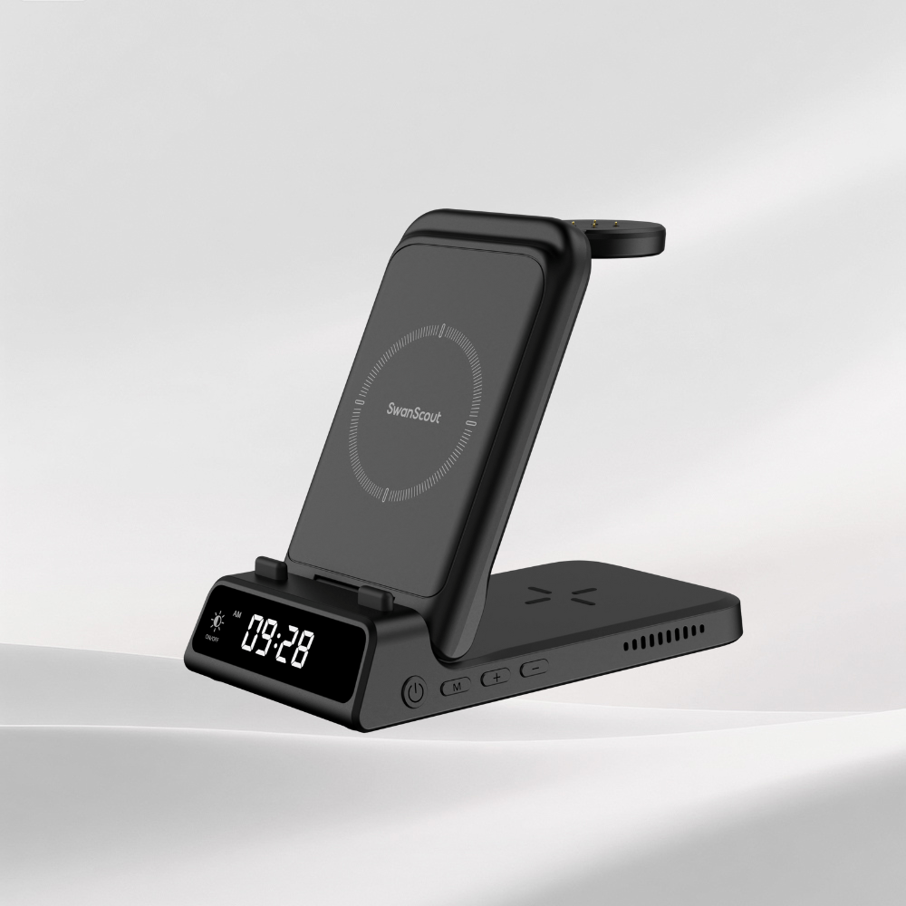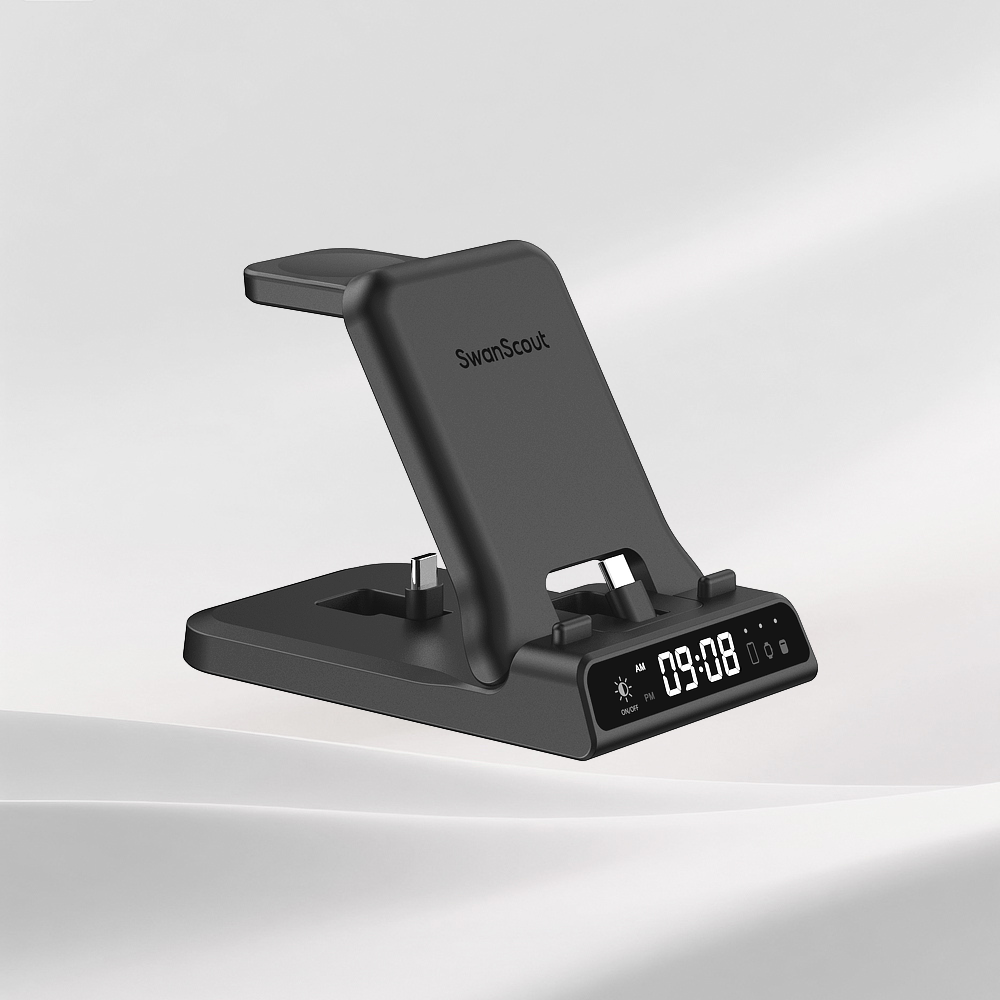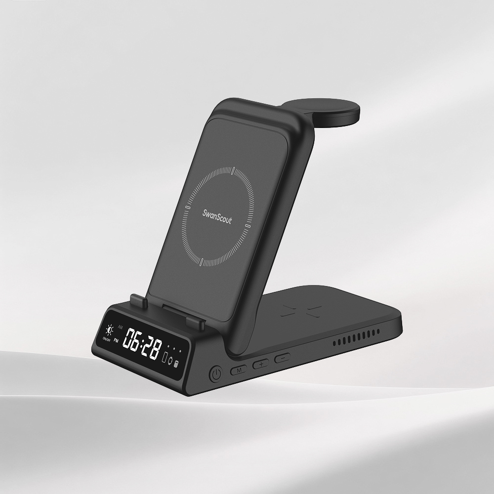 تدعم شواحن SwanScout اللاسلكية القابلة للطي عادةً وضعين للشحن: قم بوضع الشاحن في وضع قائم لإمساك الهاتف عموديًا، وهو وضع مثالي لمشاهدة المحتوى أو التحقق من الرسائل أثناء الشحن. إذا لم يعمل الشحن، فحاول ضبط زاوية الطي لتتوافق بشكل أفضل مع ملف الهاتف. عند وضعه في وضع مسطح، يمكن للشاحن شحن الهواتف أو سماعات الأذن اللاسلكية. بالنسبة لسماعات الأذن، قم بمحاذاة رمز الملف الموجود على لوحة الشحن لوضعها في الموضع الصحيح. يدعم هذا التصميم المرن مختلف تصميمات الأجهزة ويحسن من الراحة والتوافق.