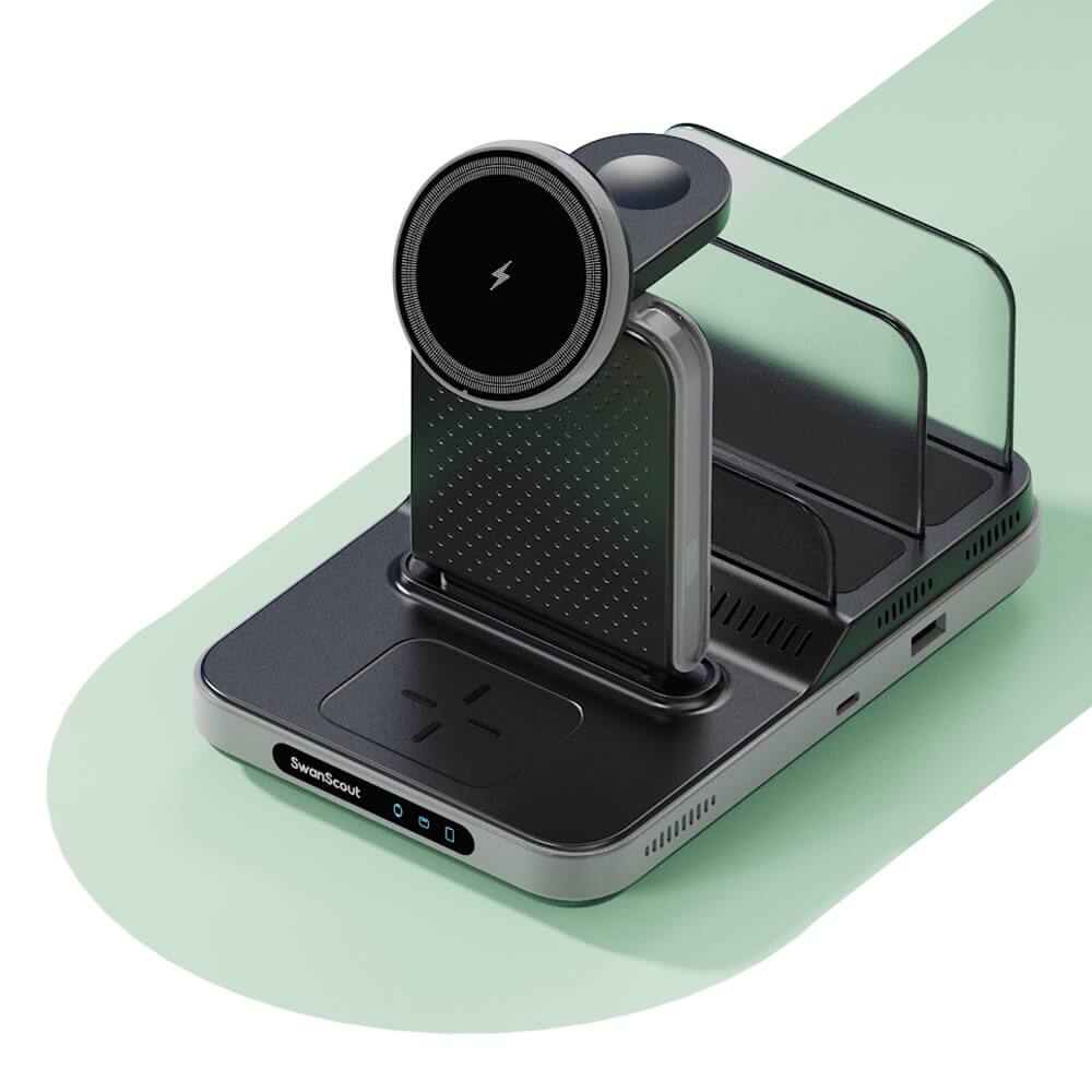 Бюрата често са тесни, а многото зарядни и кабели водят до безпорядък и стрес. Безжичните зарядни устройства 3 в 1 и двойните модели на SwanScout събират всички ваши устройства в едно чисто и компактно решение, което помага да поддържате учебното си пространство подредено, ефективно и готово за концентрация.