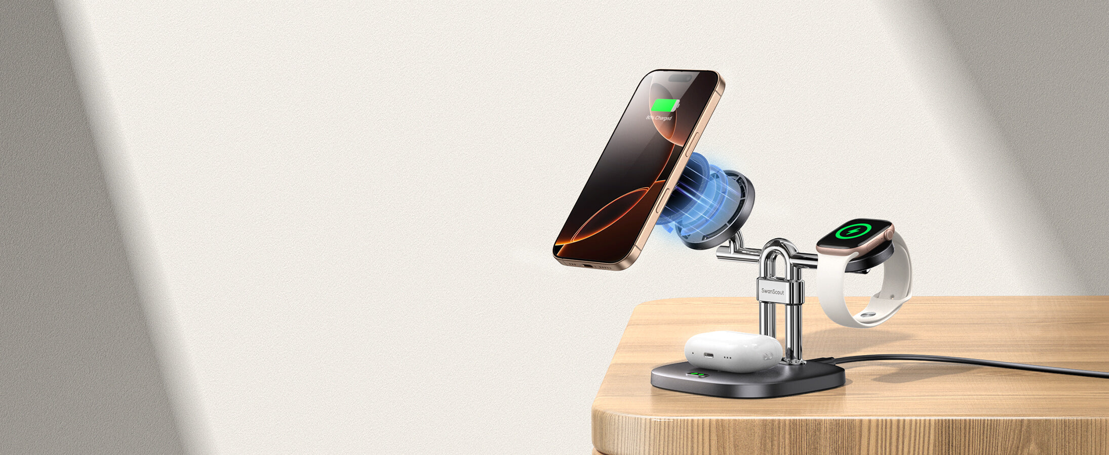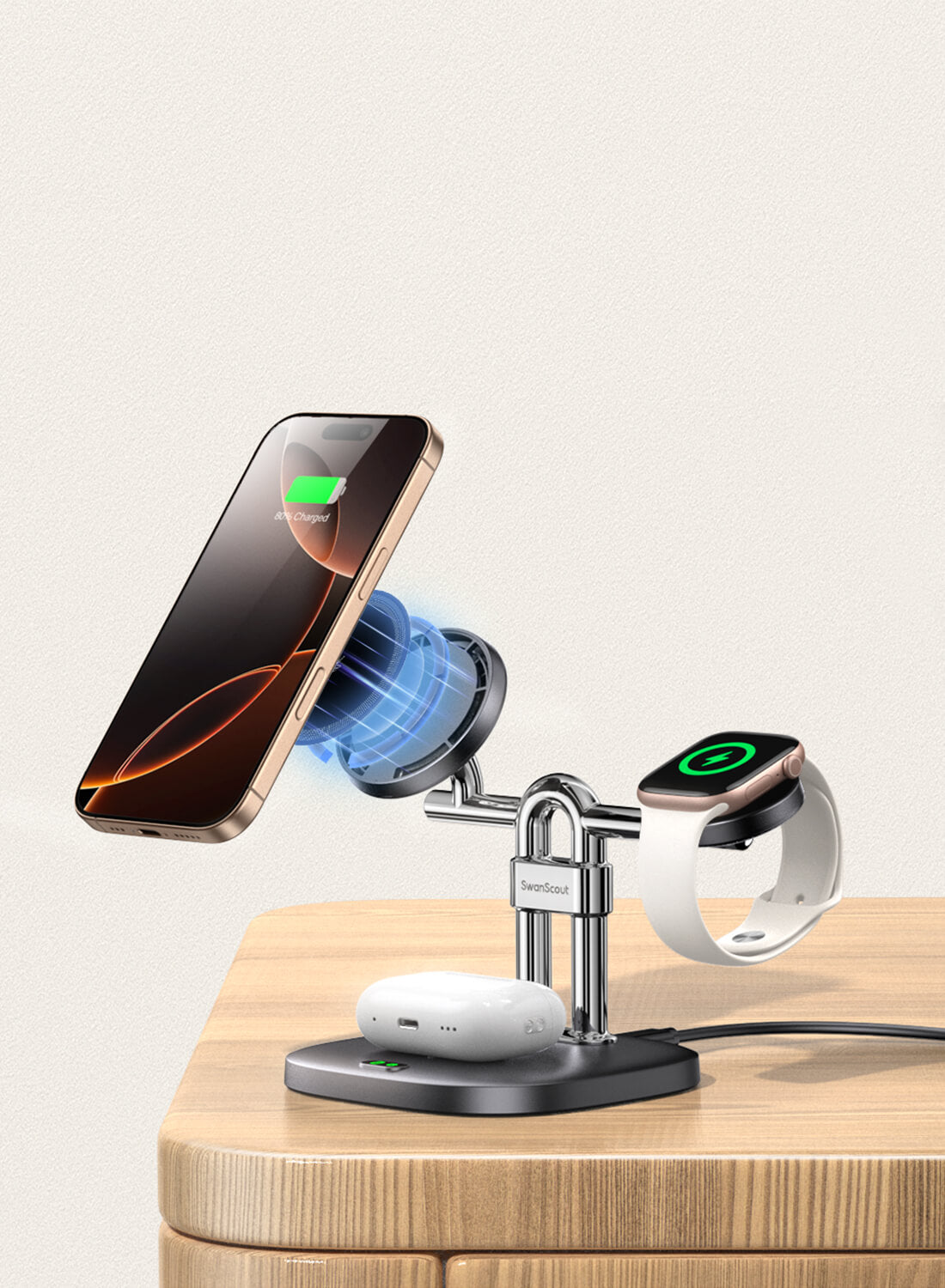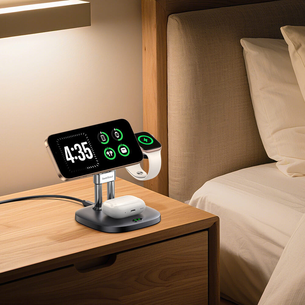 SwanScout 712M – 3 v 1 magnetická bezdrátová nabíjecí stanice pro Apple