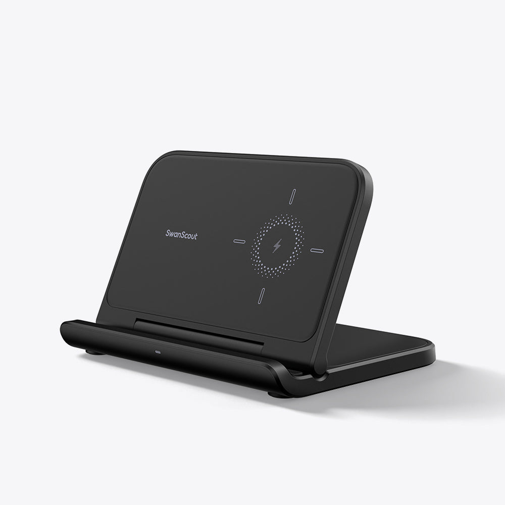 Die faltbaren kabellosen Ladegeräte von SwanScout unterstützen in der Regel zwei Lademodi: Stellen Sie das Ladegerät auf, um das Telefon vertikal zu halten – ideal, um während des Ladevorgangs Inhalte anzusehen oder Nachrichten zu checken. Wenn der Ladevorgang nicht funktioniert, versuchen Sie, den Faltwinkel anzupassen, um eine bessere Ausrichtung mit der Spule Ihres Telefons zu erzielen. Wenn das Ladegerät flach liegt, kann es Telefone oder kabellose Ohrhörer mit Strom versorgen. Richten Sie die Ohrhörer für eine genaue Positionierung an dem auf dem Ladepad markierten Spulensymbol aus. Dieses flexible Design unterstützt verschiedene Gerätelayouts und verbessert sowohl den Komfort als auch die Kompatibilität.