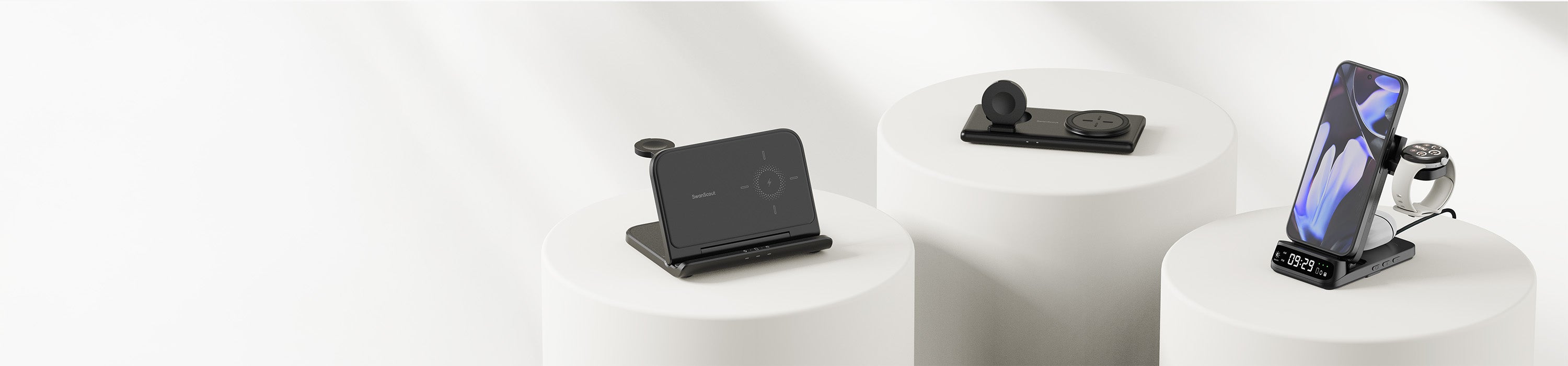 Aufgrund unterschiedlicher Anforderungen hinsichtlich der Platzierung der Spule und des Ladevorgangs bietet SwanScout separate kabellose Ladegeräte an, die speziell für die Pixel Watch 1 und die Pixel Watch 2/3 entwickelt wurden. Jedes Ladegerät verfügt über generationsspezifische Magnetfelder und Konturen, um eine präzise Passform und eine stabile, effiziente kabellose Ladefunktion zu gewährleisten.