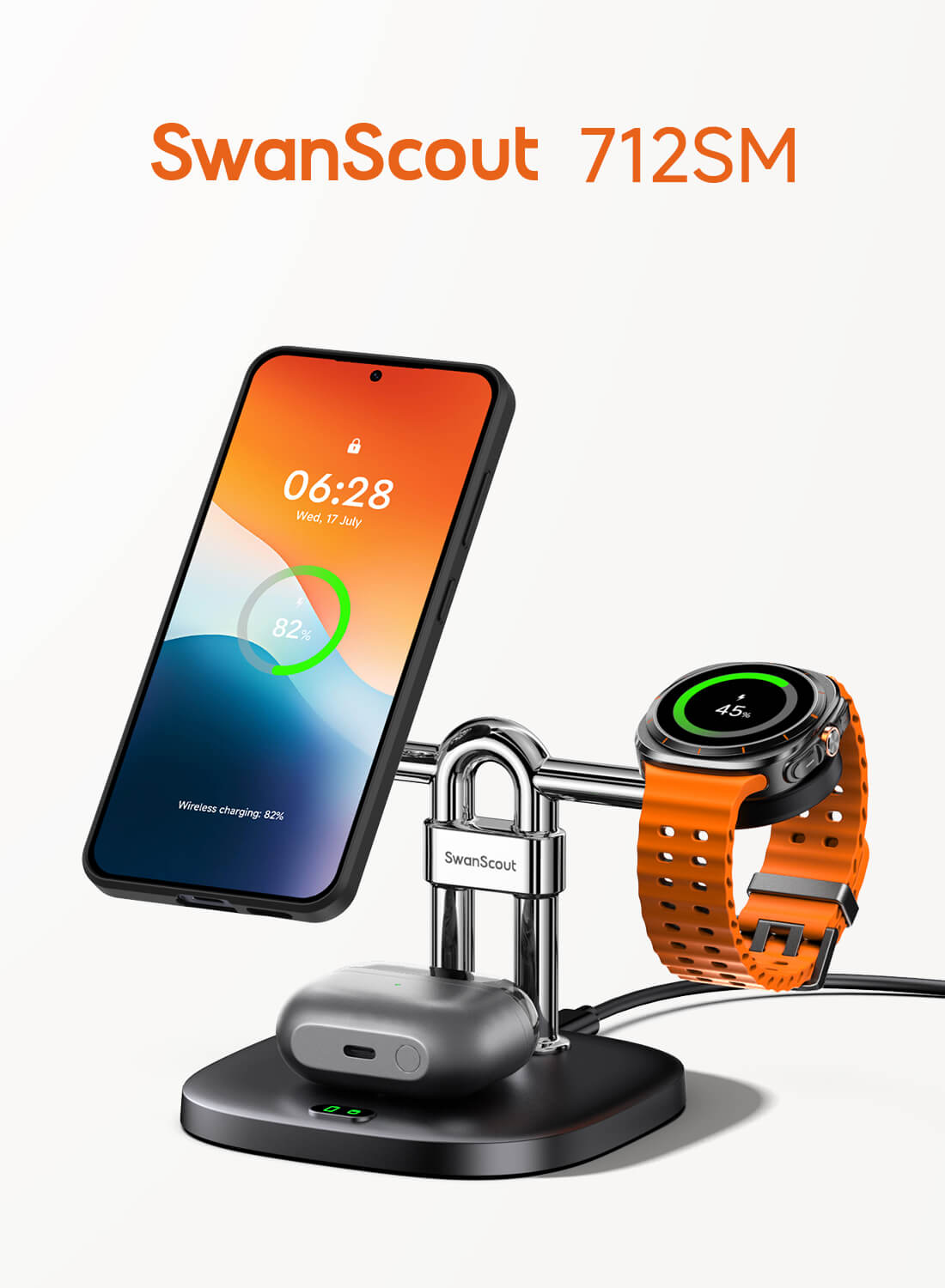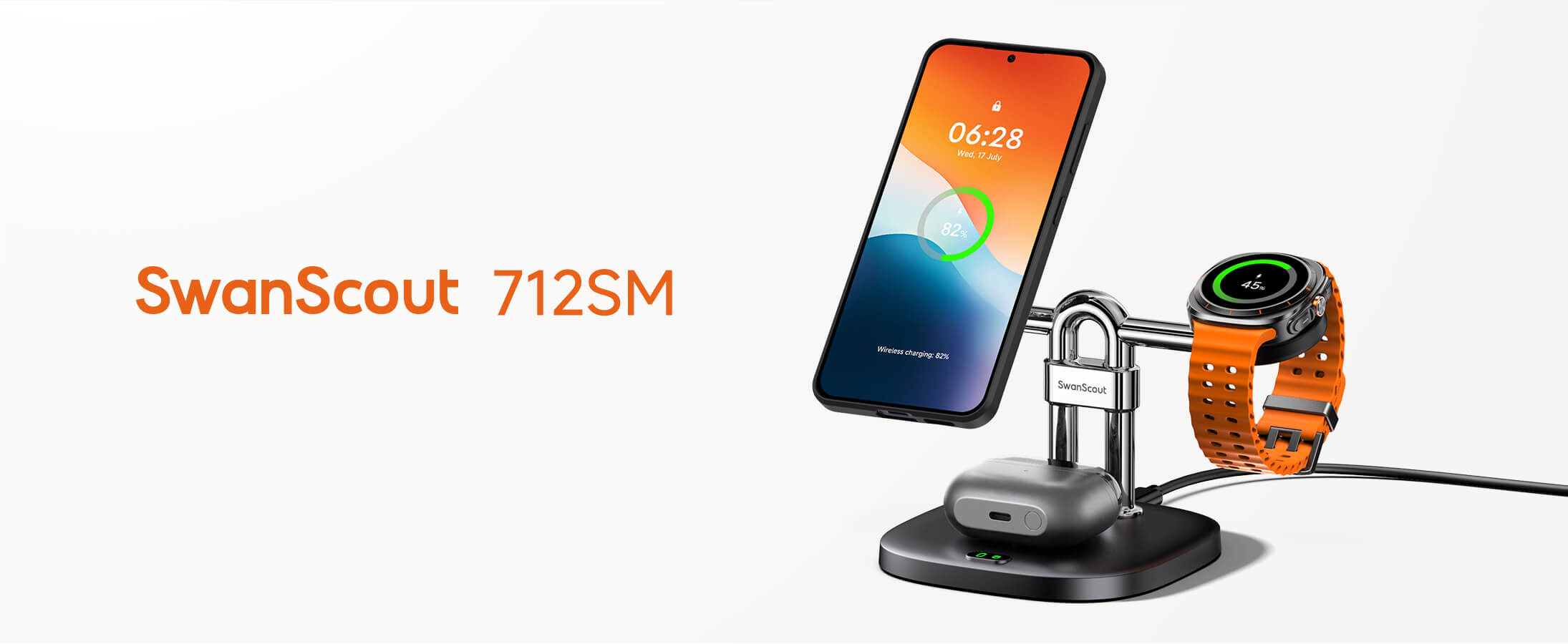 SwanScout 712SM – 3-in-1 magnetische kabellose Ladestation für Samsung