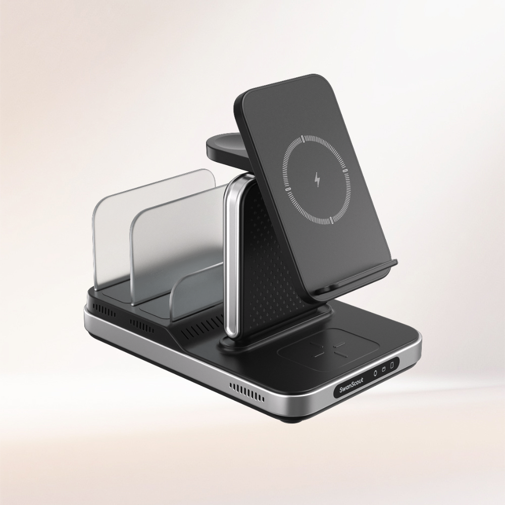 SwanScout 901M - Cargador inalámbrico 5 en 1 para Apple
