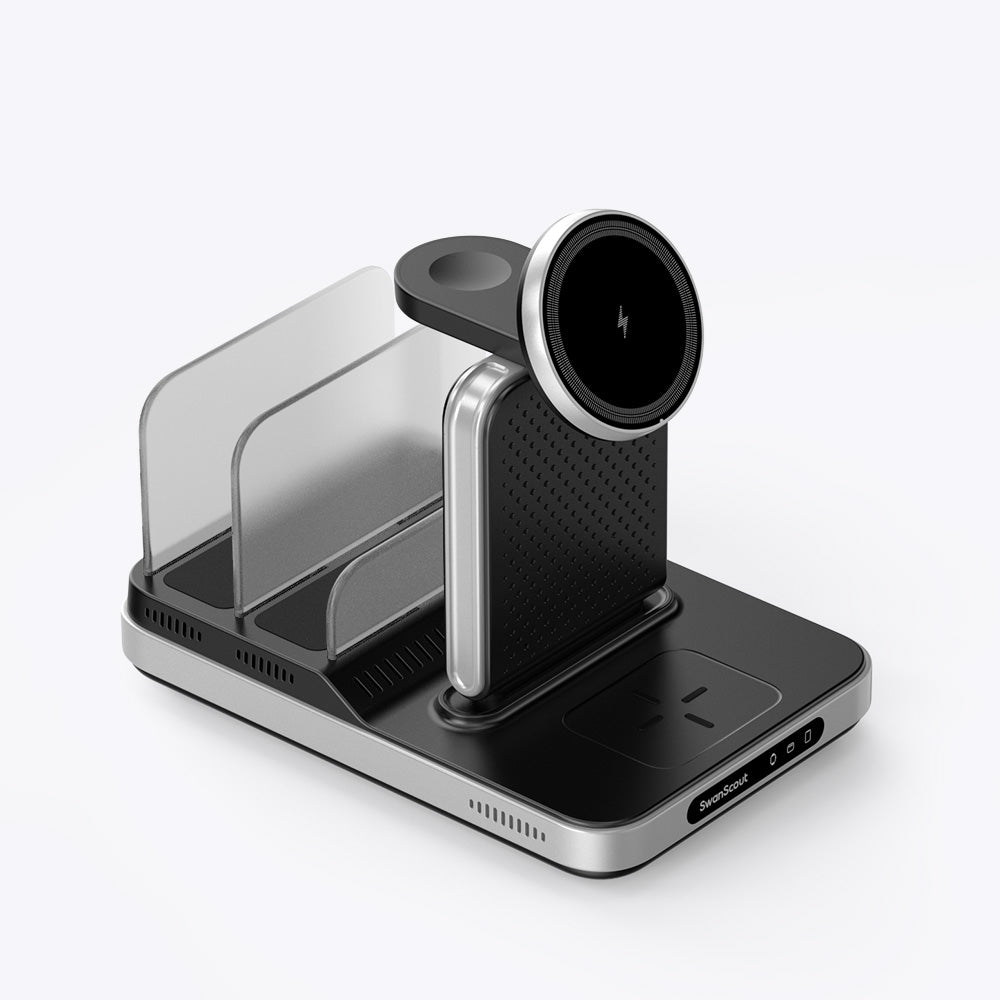 A SwanScout otthoni és irodai Apple töltők intelligens, leegyszerűsített töltési megoldást kínálnak a háztartások számára. A kompakt, 3 az 1-ben töltő ideális éjjeliszekrényre vagy nappali felületre, hatékonyan tölti az iPhone 17, az Apple Watch Series 10 és az AirPods Pro készülékeket. A precíz mágneses igazítás támogatja az iPhone 12-17 sorozatot, az alacsony sugárzású technológiának és az állítható LED-jelzőknek köszönhetően biztonságot és éjszakai kényelmet biztosít, tökéletesen illeszkedve a modern otthoni igényekhez.