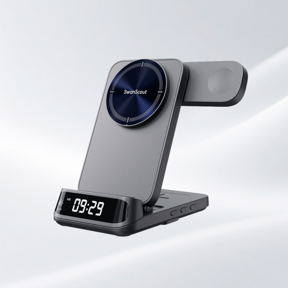 The swanscout 708M combines elegance and speed with fast wireless charging for iPhone and Apple Watch.Designed for daily convenience, the swanscout 708M is an ideal charging station for multiple Apple devices.