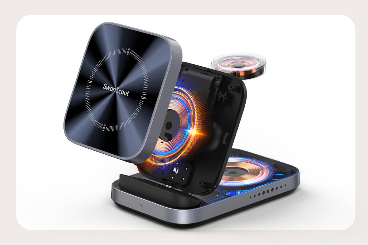 SwanScout 713A - Caricatore wireless pieghevole 3-in-1 per Apple