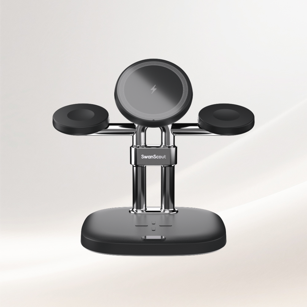 견고한 금속 스탠드가 장착된 SwanScout 충전기는 시계와 기타 기기를 수직 및 수평으로 안정적으로 고정하여 미끄러짐 없이 안정적으로 사용할 수 있도록 도와줍니다. 세심하게 설계된 스탠드는 사용성을 향상하는 동시에 실수로 떨어뜨리거나 손상되는 것을 효과적으로 방지하여 걱정 없는 충전 경험을 선사합니다.