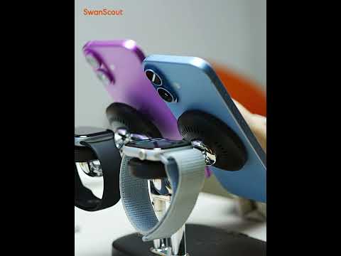 While both models are 5-in-1 charging stations, the SwanScout 902M features a distinct hardware configuration and aesthetic. Engineered as an evolution of the 706 and 709 series, the 902M specifically optimizes the charging layout to support two MagSafe-compatible iPhones and two Apple Watches simultaneously, alongside one pair of AirPods. This differs from the 901 series by providing dual magnetic phone mounts for users who prioritize dual-iPhone fast alignment and desk organization.