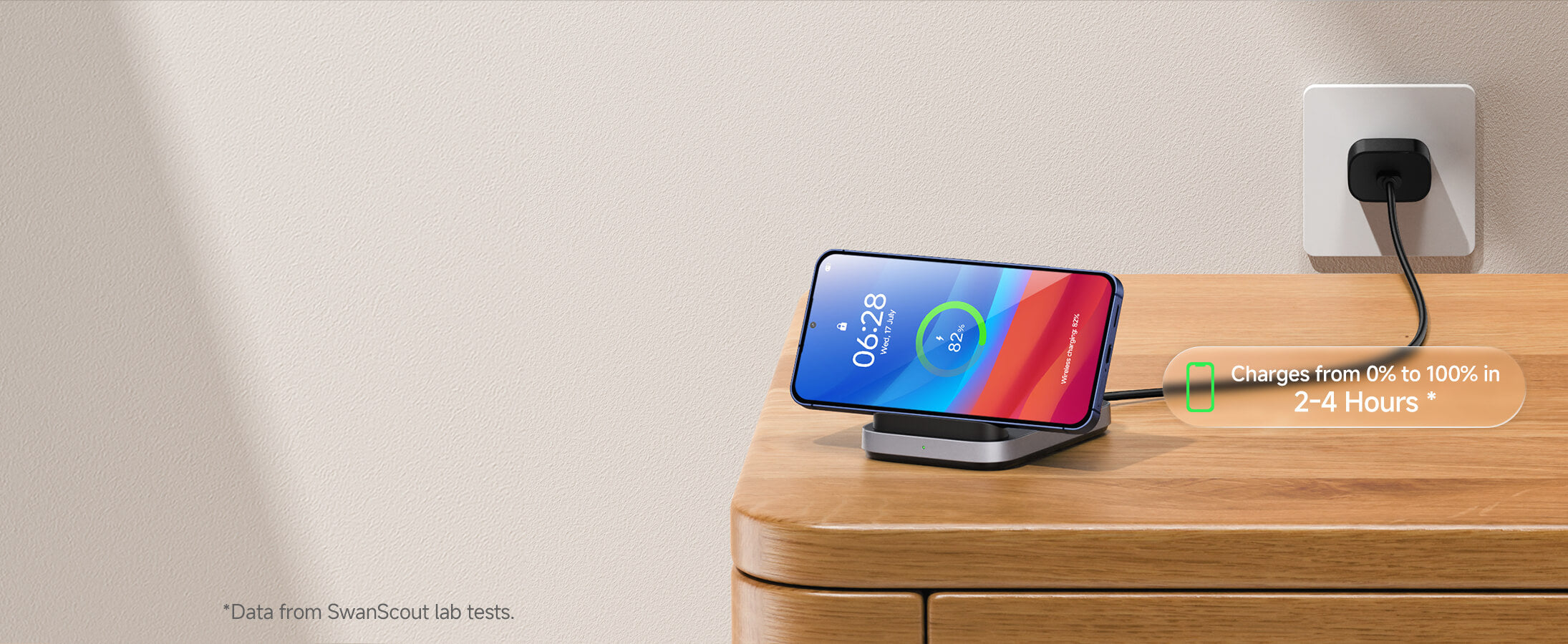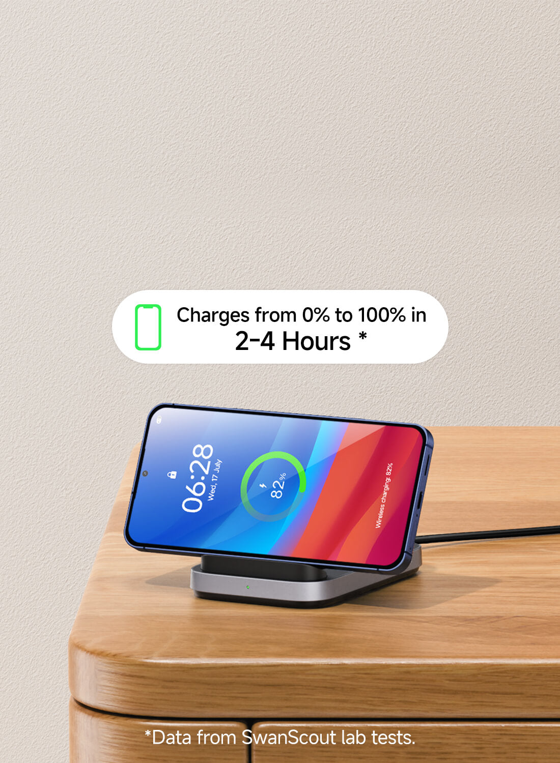 Suporte de Carregamento Sem Fio para Samsung Galaxy S25 Ultra/S25/S24/S23, para iPhone 17/Air/16/15/14/13/12, para Google Pixel 9/9a/8/7/6, Apenas Carregamento Horizontal, SwanScout 508 (Sem Adaptador)