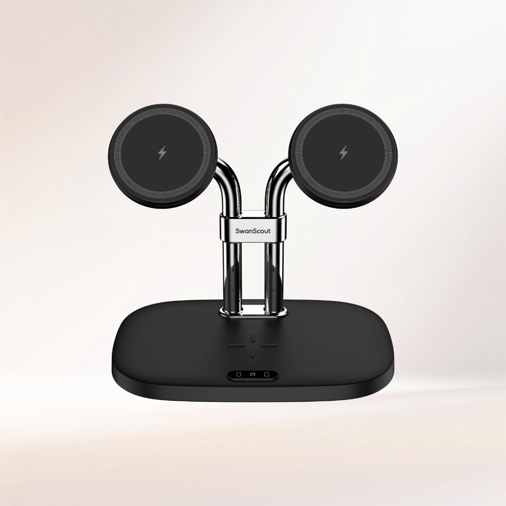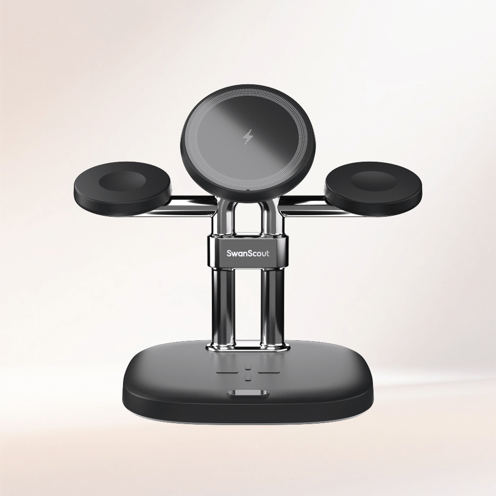 SwanScout’s Home & Office Chargers for Apple are engineered for workplace efficiency and professionalism. The desktop station’s adjustable stand enables simultaneous charging and use of iPhone 17 Pro, optimizing video conferencing and notification access. 15W MagSafe fast-charging technology ensures rapid and stable power delivery, meeting high-demand work schedules. An integrated smart thermal control system prevents overheating, while cable-concealing design maintains a tidy, professional workspace.