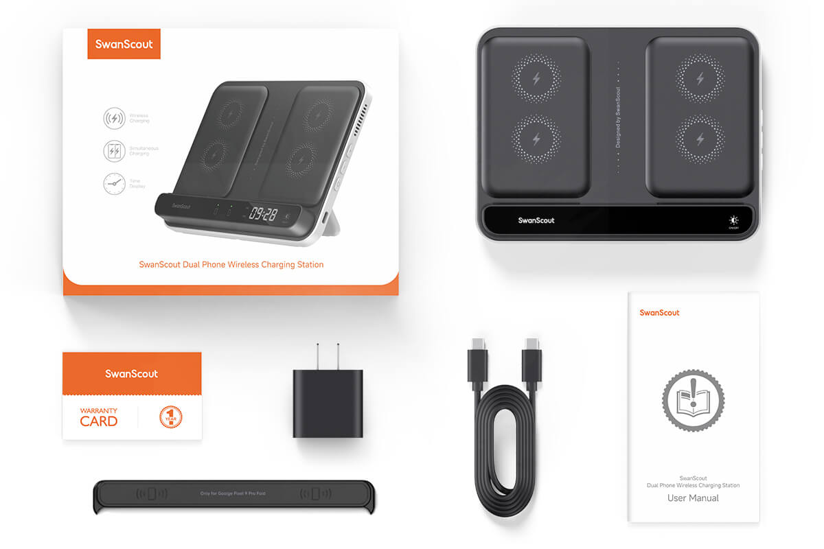 Built for Samsung users, the SwanScout 504F functions as a Samsung Galaxy charging station, unifying charging into one base. The SwanScout 504F supports wireless charging for the Google Pixel 9 Pro Fold, making it ideal for mixed-device households.