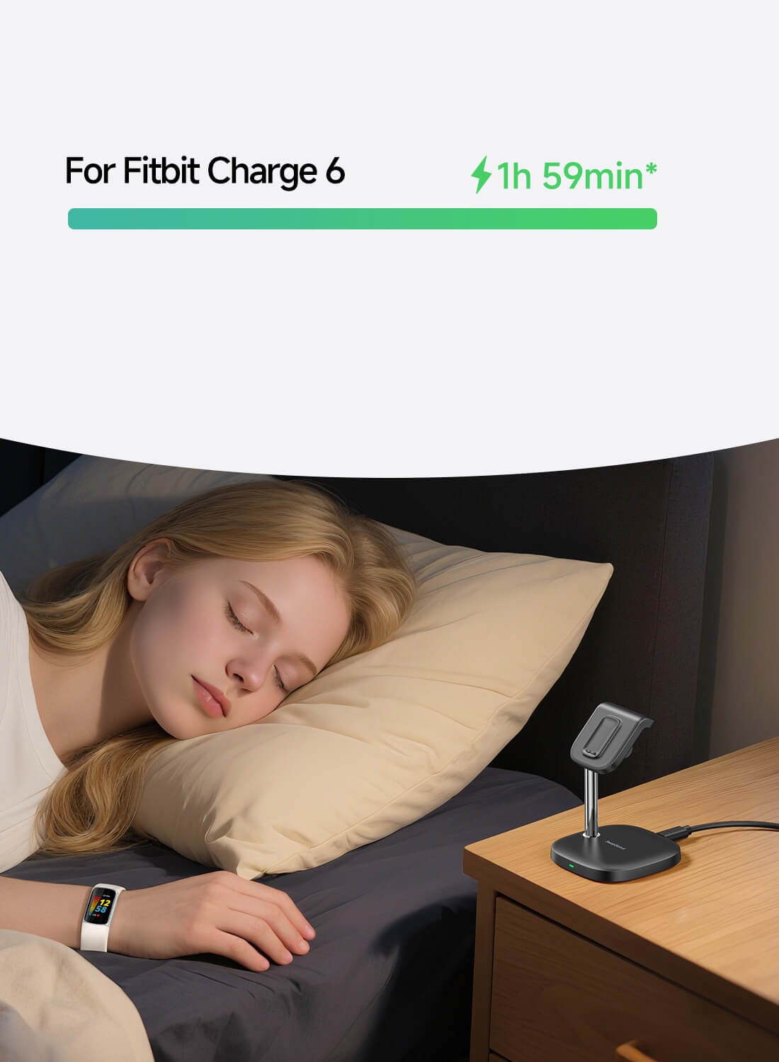 睡前快速为 Fitbit Charge 6 充电,确保整夜睡眠监测无忧