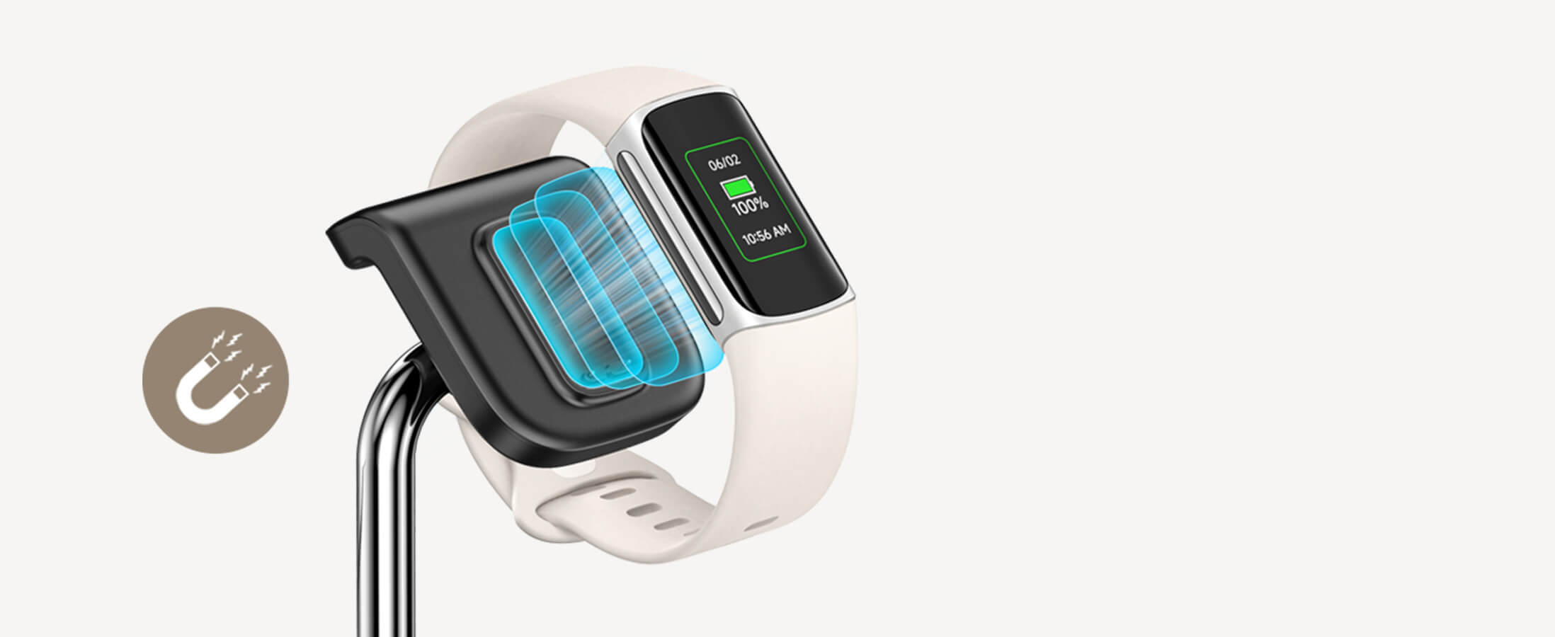 • 专为 Fitbit Charge 6/5 和 Luxe 设计的垂直充电座,外形时尚简洁。